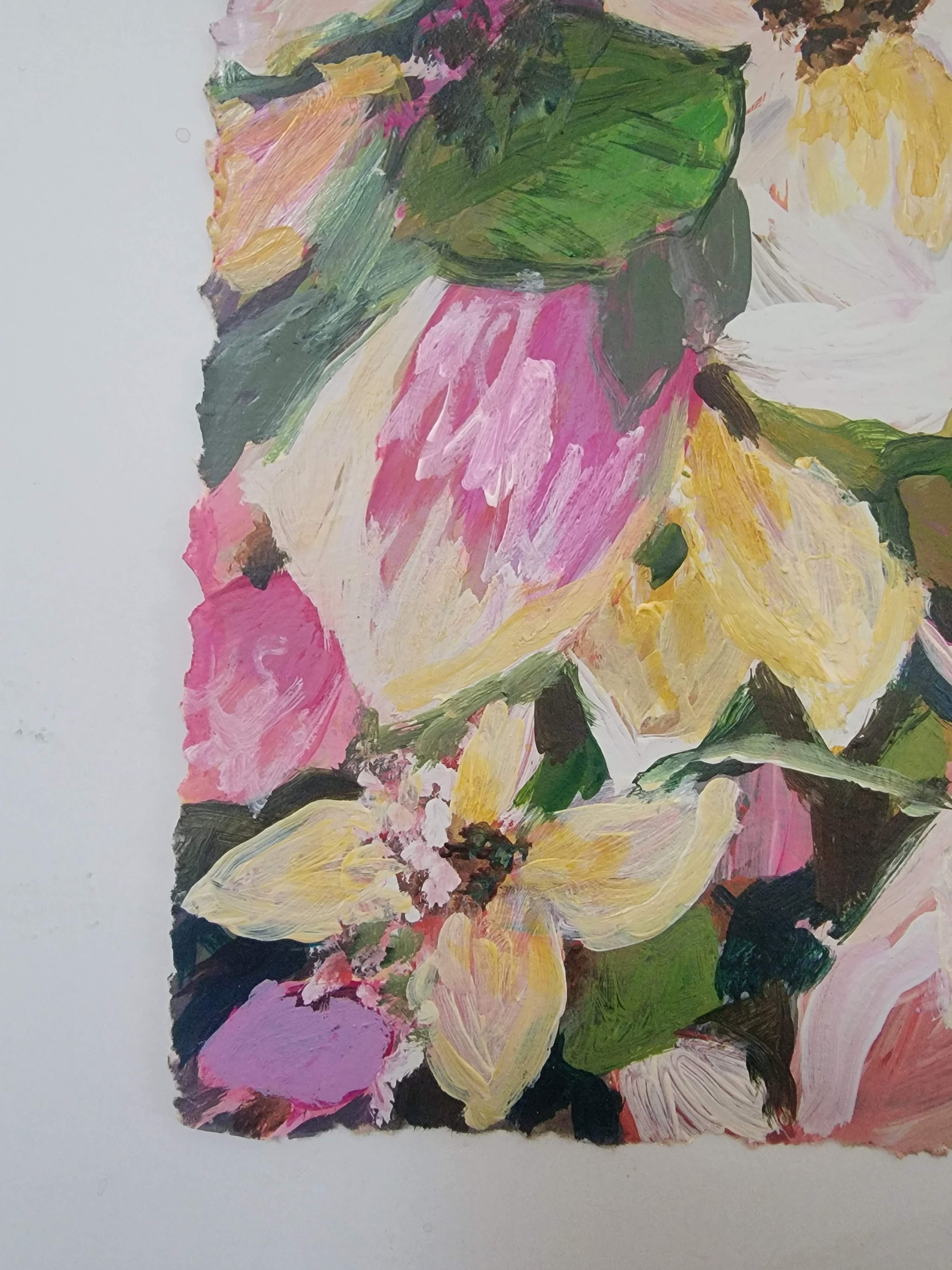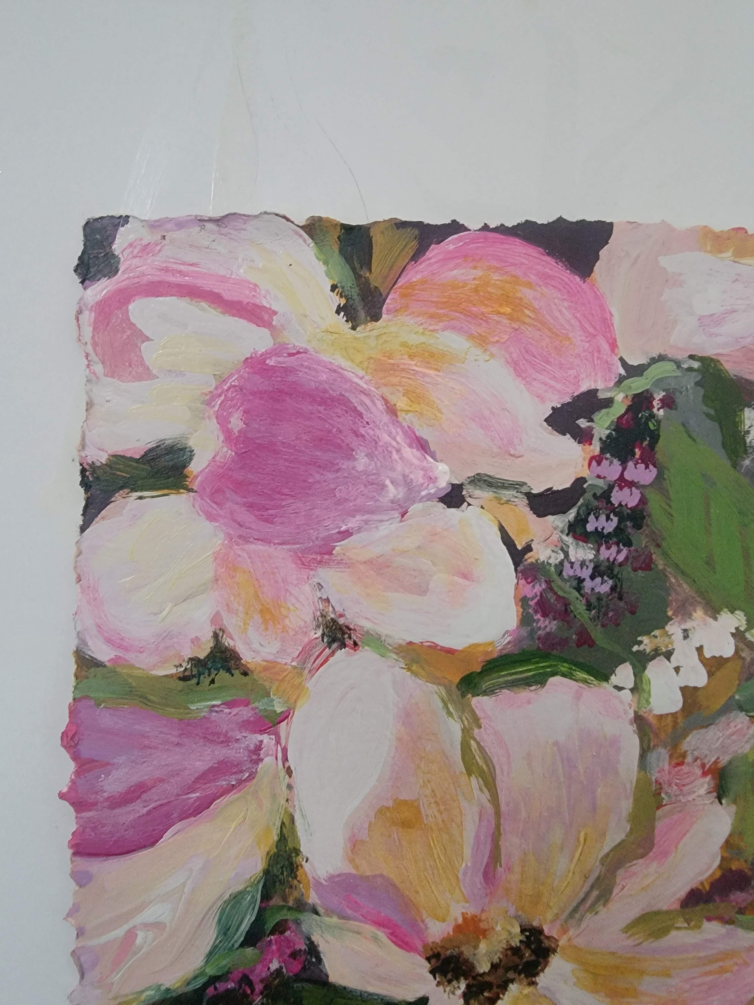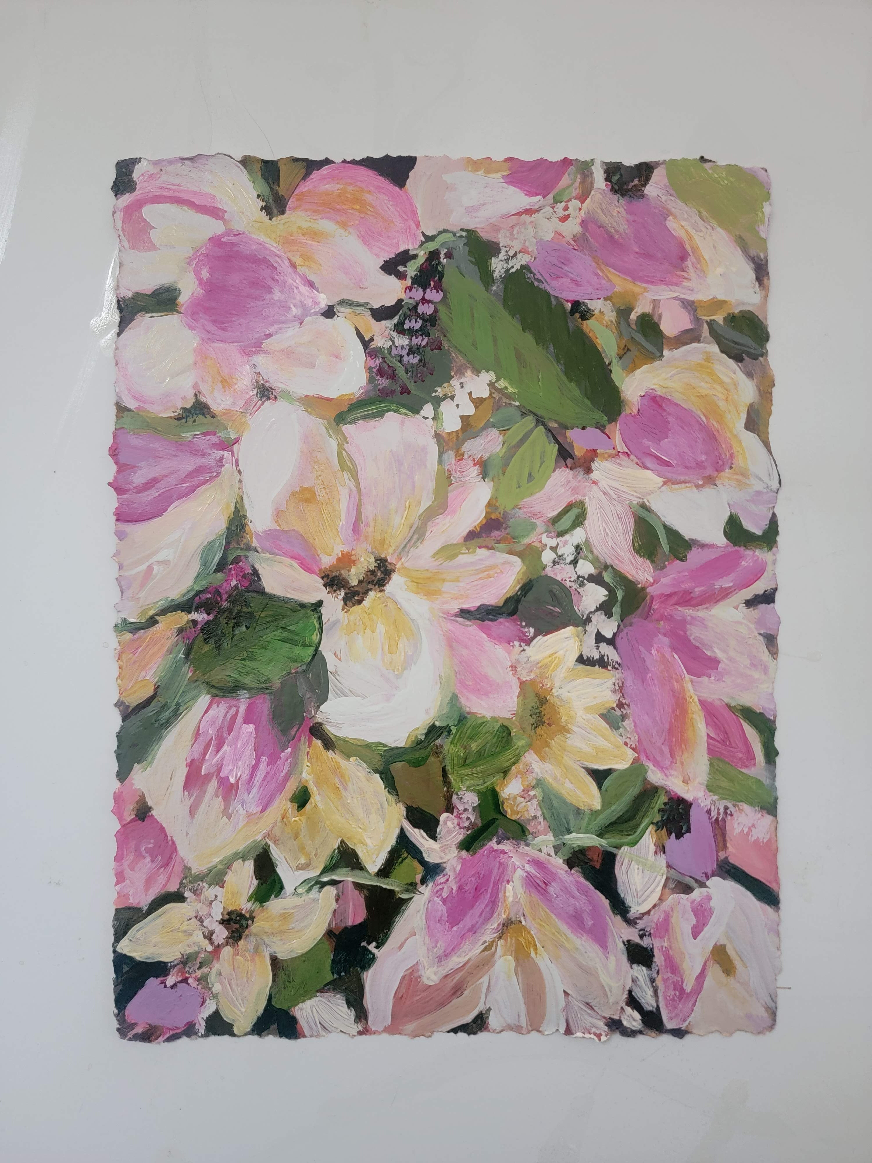 Magnolias have always felt like love notes from nature, tender, fleeting, and impossibly beautiful. In this painting, layers of soft pink and cream petals unfold like pages of a story, each brushstroke capturing the quiet romance of spring’s first blooms. The blossoms seem to lean toward one another, whispering secrets only flowers would know, while the warm greens wrap them in gentle embrace.